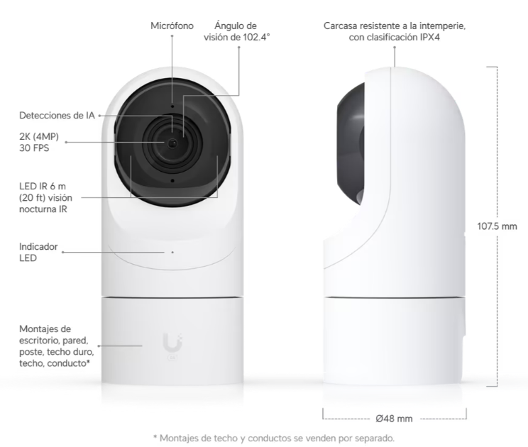 Montaje: Montaje de escritorio, pared, poste, techo duro (Incluido) Montaje en techo, colgante, Pro montaje (Opcional).